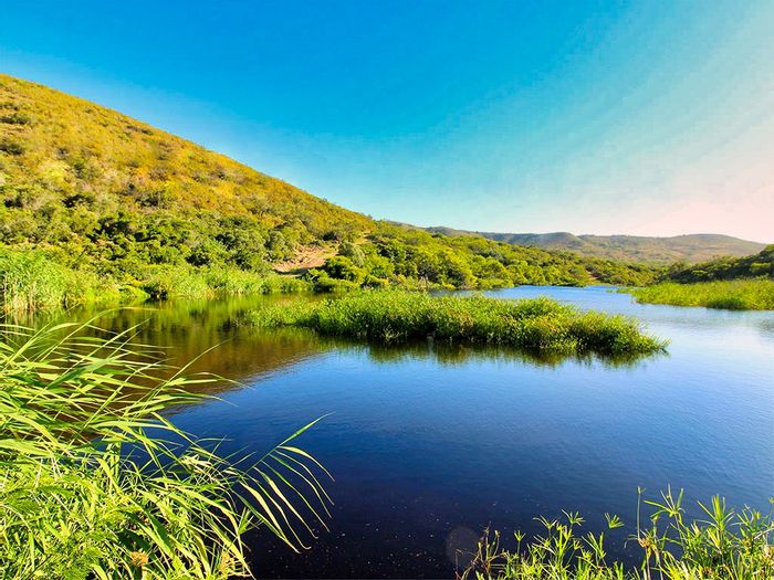 Live immersed in nature and privacy at Outeniquasbosch Eco Estate, overlooking a tranquil dam and bordering the greenbelt — wildlife, walking trails and 24-hour security nearby.