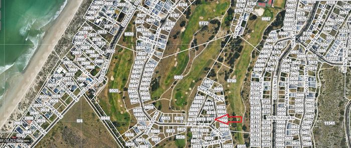Elevated vacant stand in Shelley Point Estate, St Helena Bay — fully serviced with 24-hour security, golf, beaches and lighthouse access. 487 m², 7.5 m height limit.