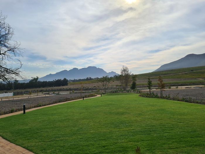 Escape to the Cape Winelands with a vacant stand overlooking Simonsberg—panoramic Drakenstein and Jonkershoek views, indigenous landscaped gardens, gated security, and 15-minute drive to Stellenbosch and Franschhoek.