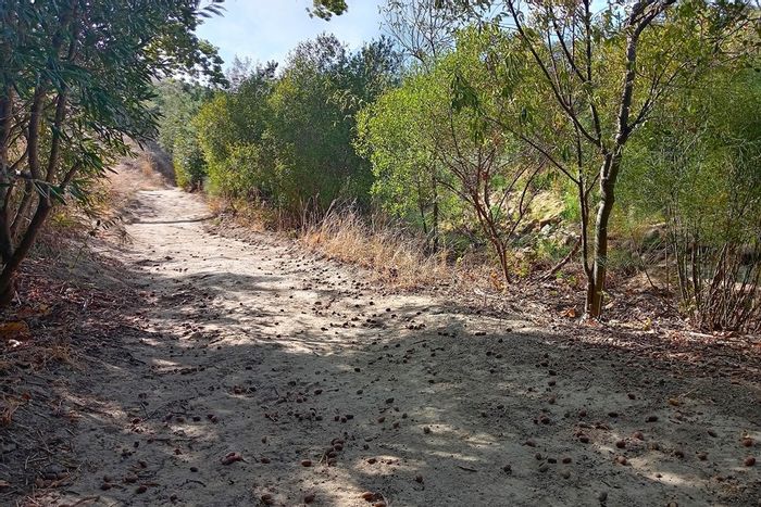 Elevated plot in secure estate near Stellenbosch, bordering green belt with views and access to hiking trails.